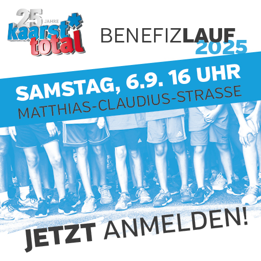 Am 6. September 2025 um 16:00 Uhr ist es endlich wieder so weit – nach mehreren Jahren Pause startet wieder der Kaarst Total Benefizlauf! Schnapp dir deine Laufschuhe und erobere die 3 km durch die Innenstadt. Mitmachen kannst du ab 10 Jahren.
